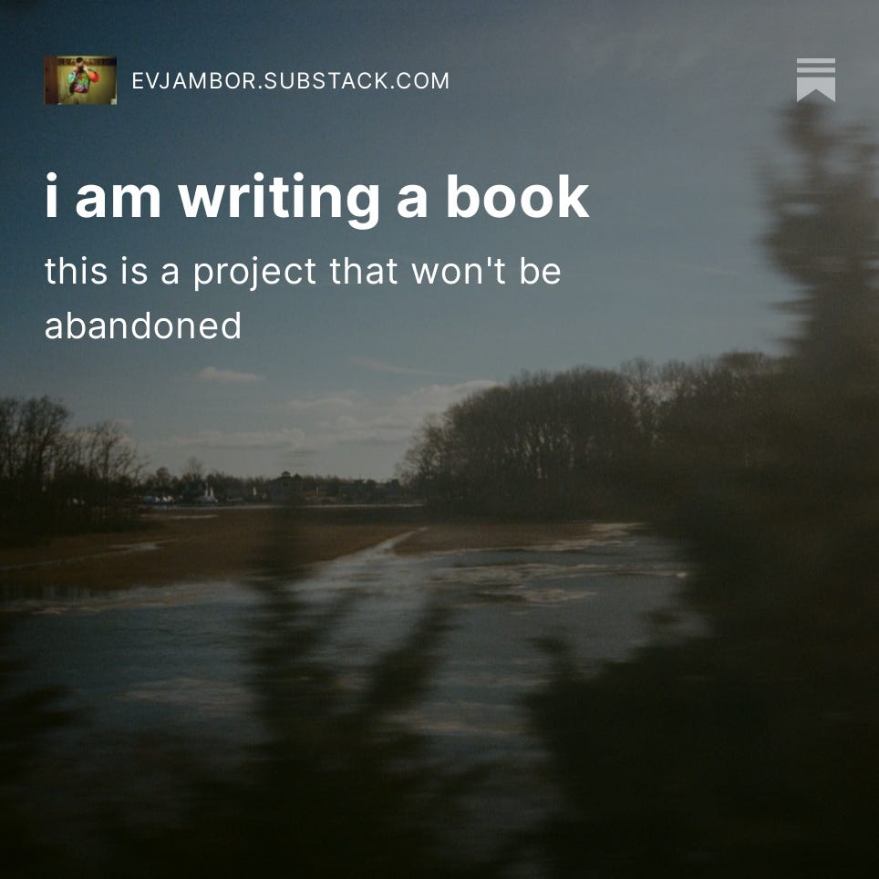 above is the preview from and a link to my first Substack post. this revitalized endeavor is the reason for this publication’s existence. and, conversely, this Substack may be the reason my work on my book has been delayed.